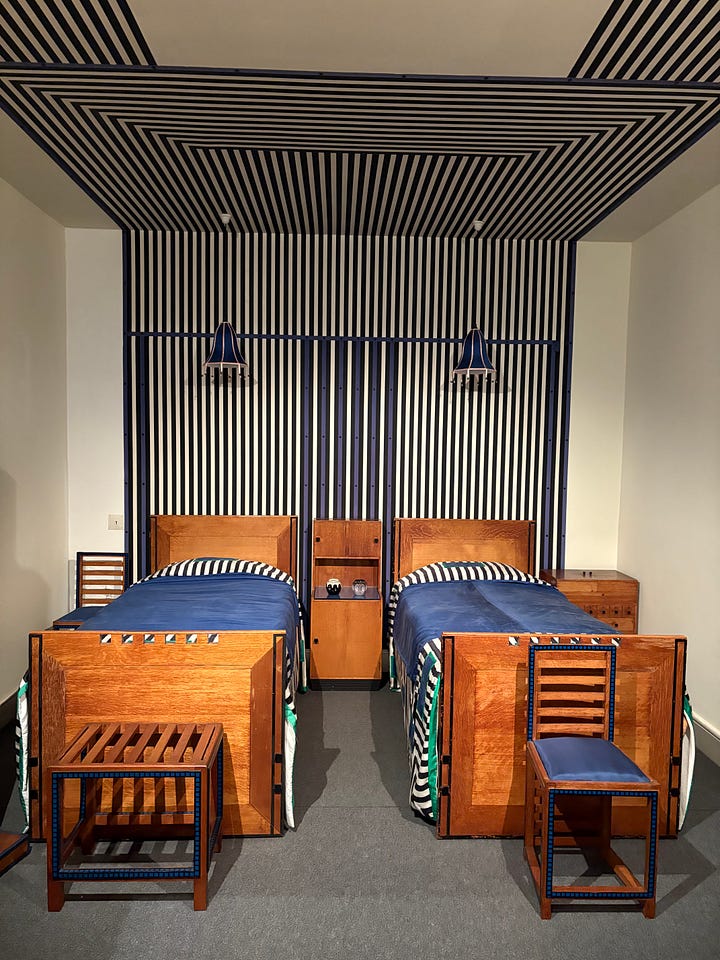 I had the chance to visit the Mackintosh House within the Hunterian Museum, and the House for an Art Lover as mentioned above, both on the same trip with the same friend. This, mixed with spotting other Mackintosh moments across the city, made the trip feel a little bookended by the Art Nouveau. The architecture is not something I would normally gravitate toward for personal taste but this makes it even more fun to look at from afar. The Mackintosh House is a very much recommended visit on a rainy afternoon. It had me wondering if the 1988 Beetlejuice movie’s set design had been inspired by Mackintosh, if anyone remembers the dinner scene I’m thinking of, you might agree!